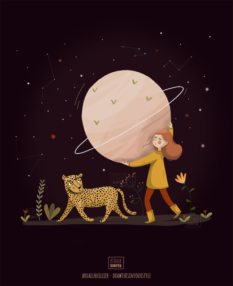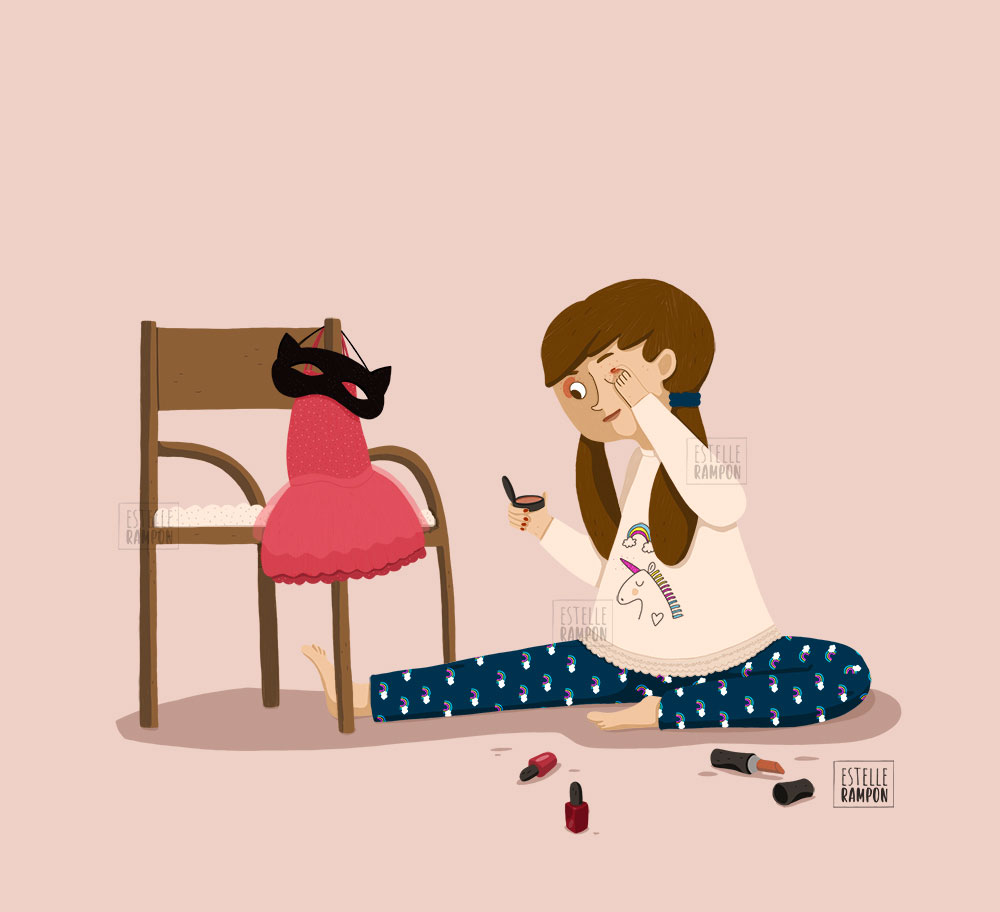 En 2017, une opportunité m'amène ensuite à l’école Emile Cohl pour suivre une formation sur "Les personnages dans l’illustration jeunesse et numérique". C'est mon premier contact avec une tablette graphique. Depuis, un travail régulier m’a permis d’affirmer mon style.